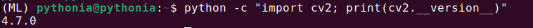 Cette commande affichera la version d'OpenCV installée sur votre système. Voilà le résultat sur mon systeme: