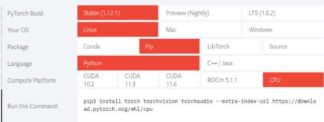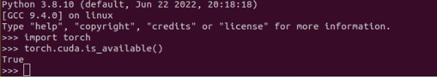 pip3 install torch torchvision torchaudio --extra-index-url https://download.pytorch.org/whl/cu114Vérification de l'installation de Pytorch sur GPU:
