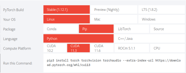 La 11.4 n'apparait pas, je remplace cu113 par cu114 dans la commande. Cela fonctionnera pour la 11.4 mais risque de ne pas fonctionner pour les versions supérieures à 11.6